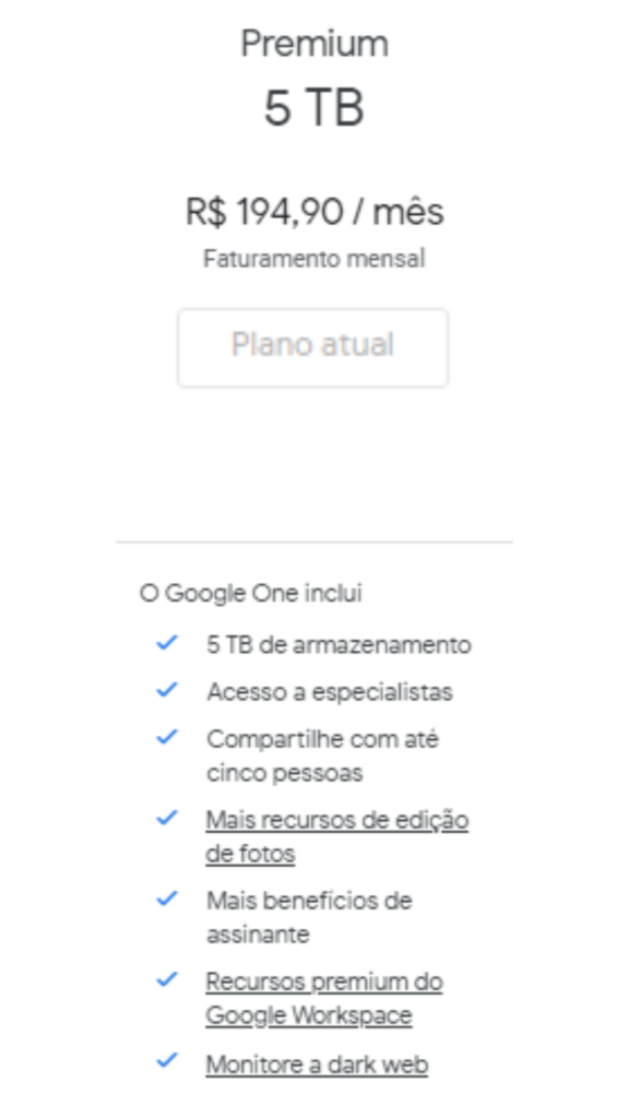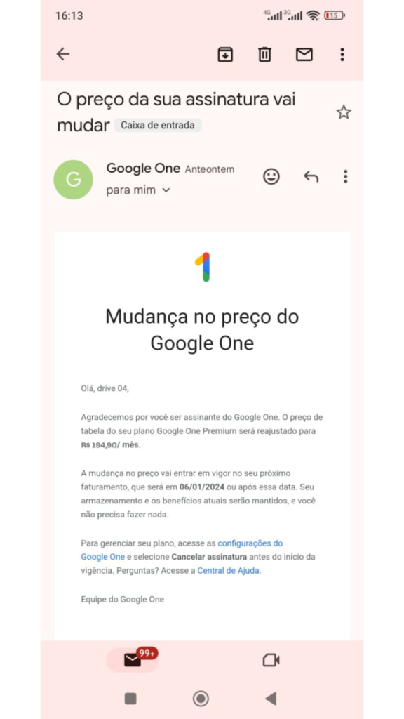 Esse valor reajustado do Google Drive teve início no dia 06-01-2024